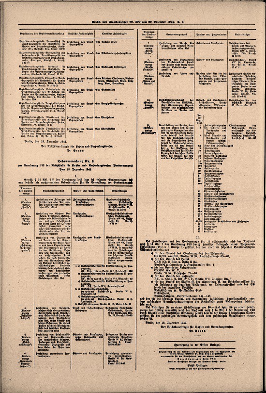 der Reichsstelle für Papier und Verpackungswesen ( Bewirtschaftung und Verteilung von Zellstoff, Holzstoff, Lumpen, Papier, Pappe, Papierwaren und Druck- Erzeugnissen)