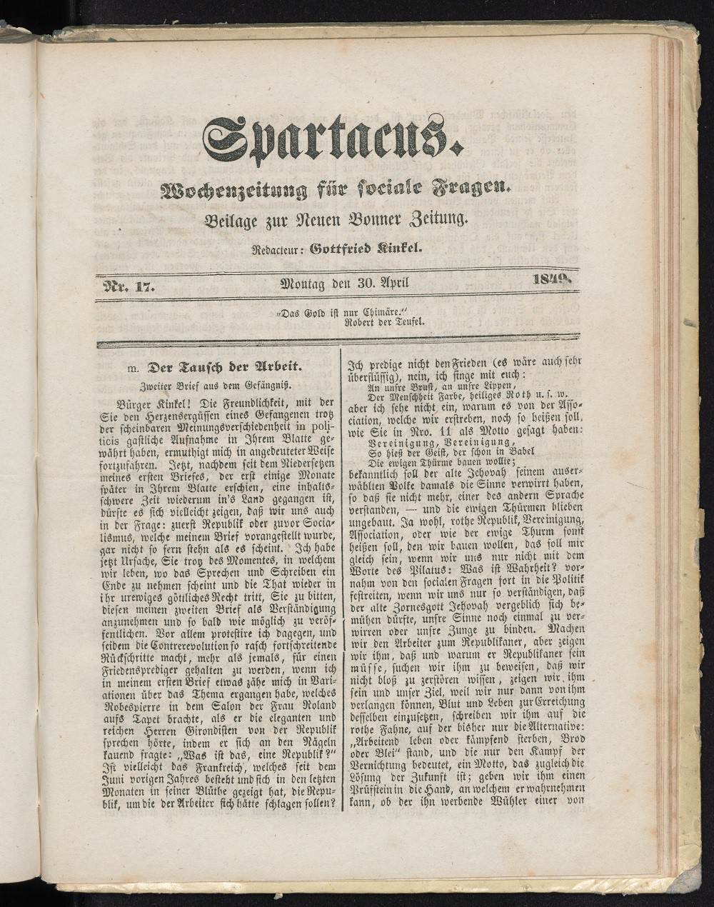 Spartacus, Sonntagsbeilage der Neuen Bonner Zeitung 30. April 1849 Nr. 17 Seite 1 bis 4